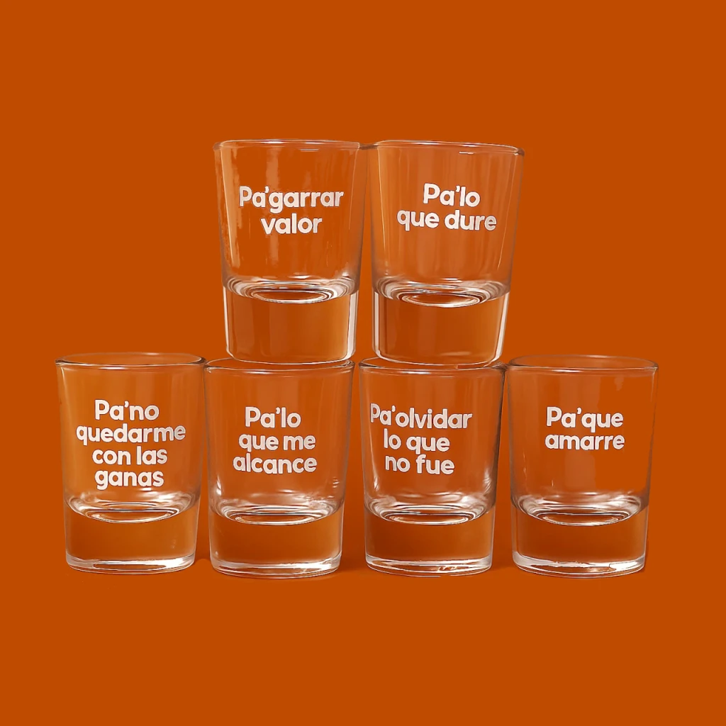 Este set de 6 vasos tequileros está hecho para quienes saben que cada brindis tiene su motivo (o su excusa). Perfectos para compartir en grupo, reírse de la vida y celebrar al más puro estilo Mexican Mood.