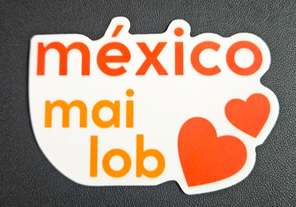 Nuestro sticker “México mai lob” es ideal para darle ese toque de actitud a tu laptop, libreta, celular o donde quieras pegarle tu buen gusto. Resistente, colorido y con toda la buena vibra Mexican Mood, porque el amor por México se lleva en todas partes.